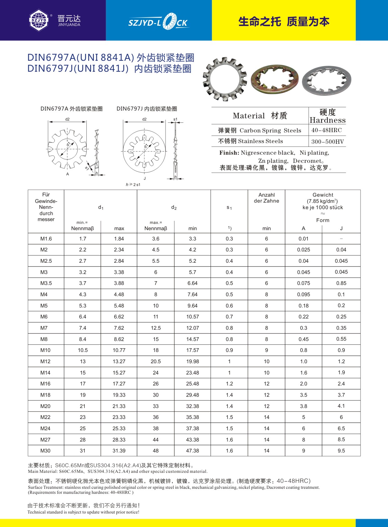 產(chǎn)品名稱:內(nèi)齒墊圈、內(nèi)齒墊片,內(nèi)齒菊花墊片,內(nèi)齒介子,內(nèi)齒華司,內(nèi)齒鎖緊墊圈等多種叫法、 執(zhí)行標(biāo)準(zhǔn):DIN6797A.UNI8841A.DIN6797J.UNI8841J