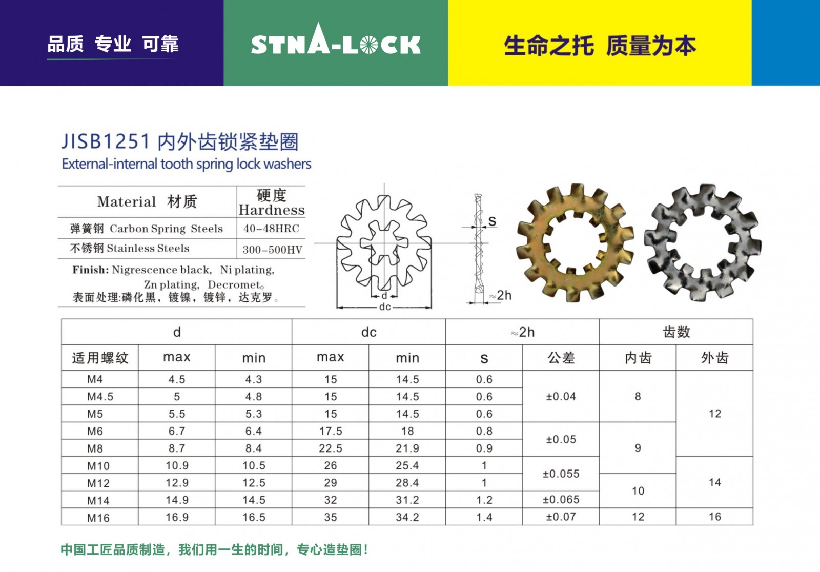 JISB1251日標(biāo)內(nèi)外齒鎖緊墊圈,常用規(guī)格:M4-M16備有現(xiàn)貨,也可根據(jù)客戶需求提供訂制尺寸,65MN或S60C材質(zhì),