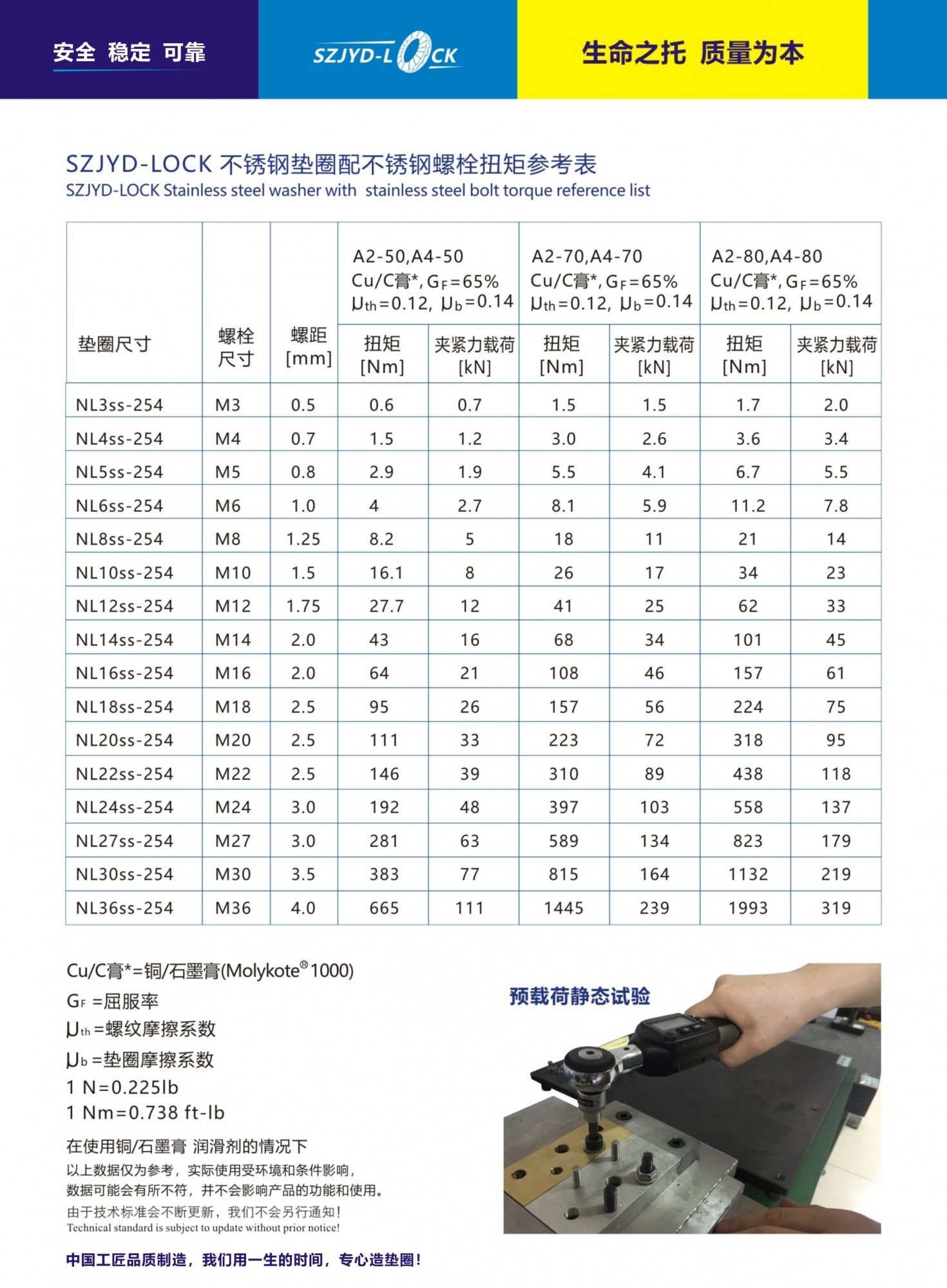 表面全部清洗拋光處理; 雙疊自鎖墊圈的使用:墊圈兩個(gè)大斜齒面成對(duì)粘合,目的是便於安裝和防止錯(cuò)誤用!墊圈的硬度必須高于螺栓的硬度!SZJYD-LOCK墊圈全部經(jīng)過(guò)DIN65151橫向振動(dòng)測(cè)試可以達(dá)到200萬(wàn)測(cè)試、其衰減率不低于70%!